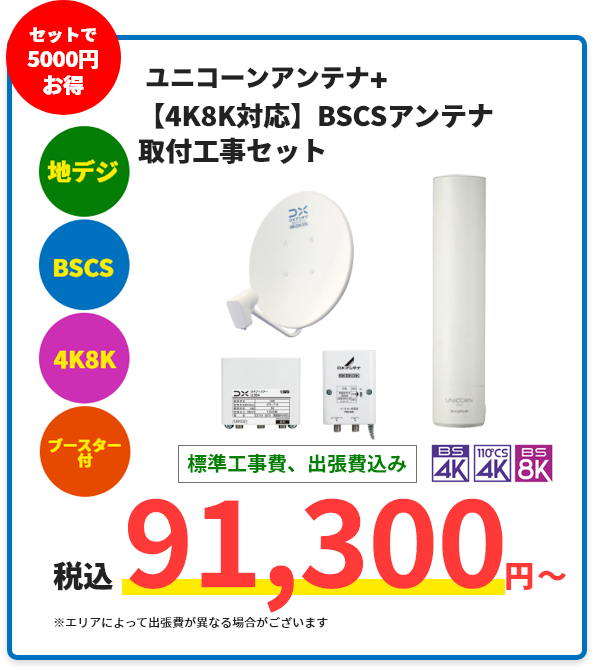 UHFアンテナ+【4K8K対応】BSCSアンテナ取付工事セット